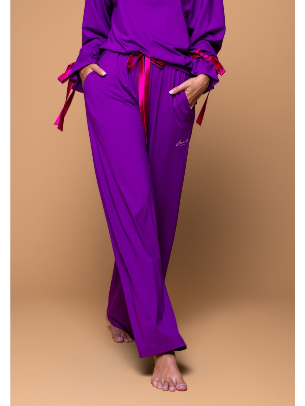 - Rovnako ako pri mikine z tejto kolekcie majú aj nohavice efektný saténový detail v podobe viazačky v páse.