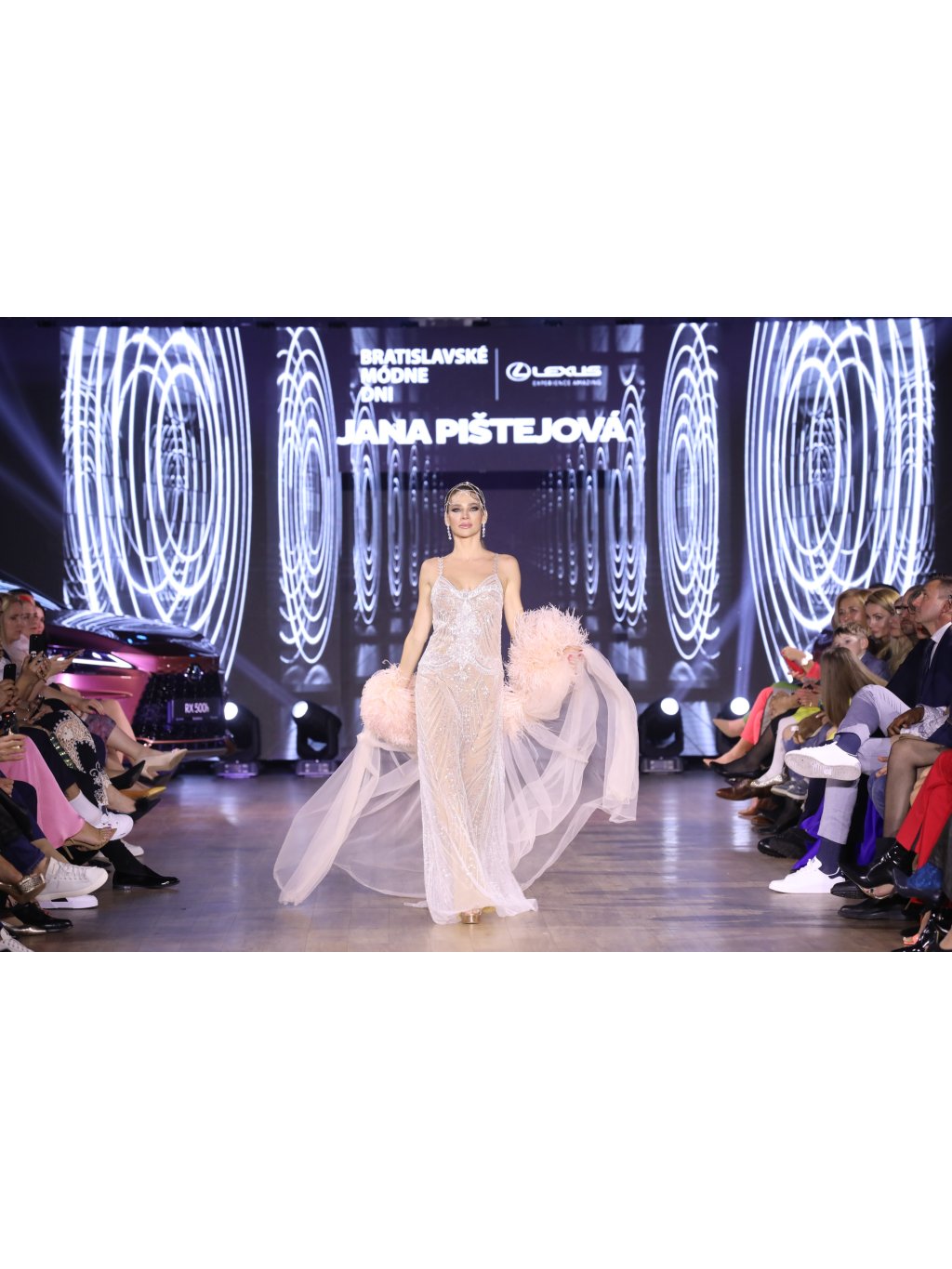 | Kryštáľové šaty: | Pštrosie perie na Boa peleríne |